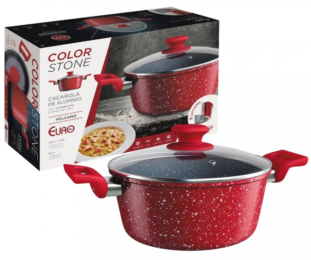 Caçarola Colorstone 24cm ref. 112324 Caçarola antiaderente Colorstone Volcano vermelha 24cm fundp para eletroindução - Euro