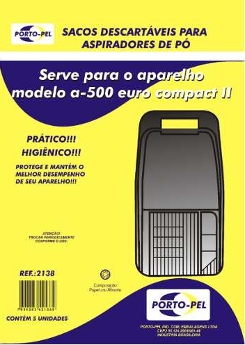 Saco p/aspirador ref. 024138 SACO ASPIRADOR DE PÓ ELECTROLUX EURO A500 2138 - PORTO-PEL