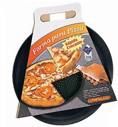 Forma para pizza ref. 0590035 Forma furada antiaderente para pizza/pão de queijo 35cm Alumínio Fortaleza