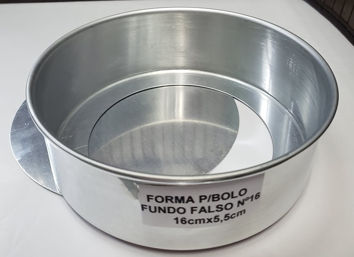 Forma p/bolo redonda fundo falso Nº16 ref. 039516 Forma para bolo redonda de alumínio fundo falso Nº16 - 16cmx5,5cm