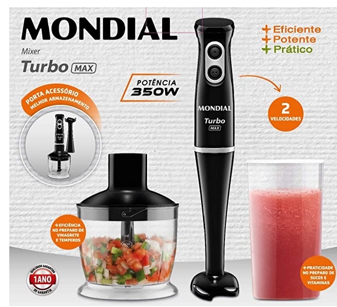 Mixer com processador ref. 135093 Mixer turbo preto com processador 350W - 220V. - Mondial