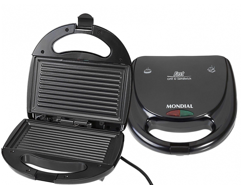 Sanduicheira grill  110V. ref. 135061 Sanduicheira grill preta Fast S-12 110V. - Mondial