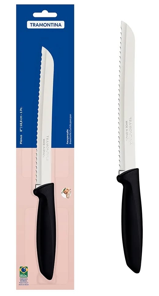Faca p/pão inox ref. 016043 Faca para pão inox cabo preto Plenus 8" 23422/108 - Tramontina