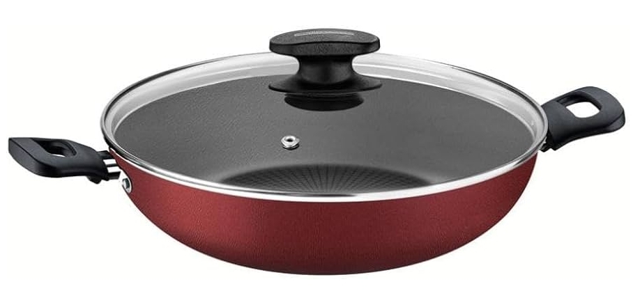 Panela wok 28cm ref. 016017 Panela wok antiaderente c/tampa de vidro 28cm Loreta vermelha - Tramontina