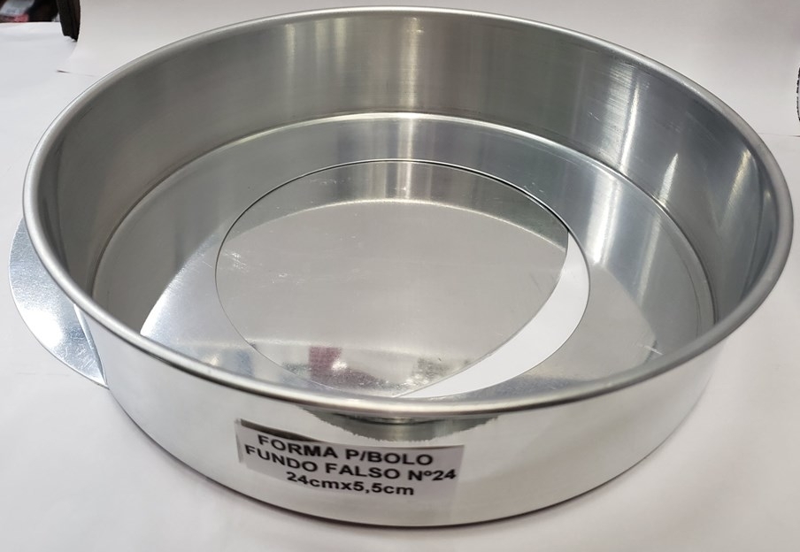 Forma p/bolo redonda fundo falso Nº24 ref. 039524 Forma para bolo redonda de alumínio fundo falso Nº24 - 24cmx5,5cm