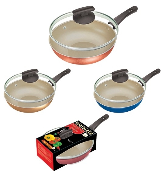 Frigideira Wok com tampa ref. 0591330 Frigideira Wok antiaderente com tampa de vidro 28cm - Al. Fortaleza