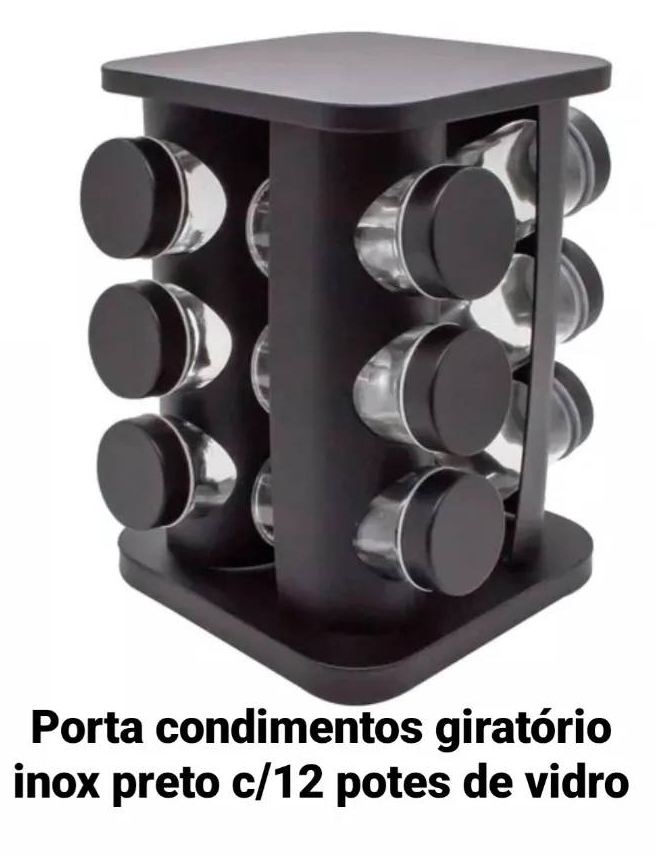 Porta condimentos giratório inox ref. 1933551 Porta condimentos giratório inox preto com 12 potes de vidro