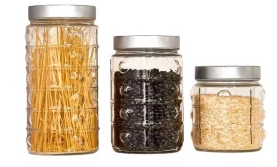 Jogo de potes de vidro 3pç. ref. 1629069 Jogo de potes de vidro tampa inox 3pç. 1,5L. /1,1L./700ml. - Mimo