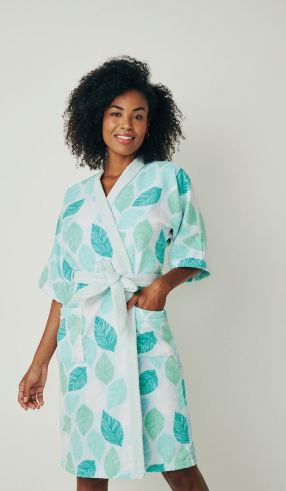 Roupão aveludado adulto G ref. 124105 Roupão aveludado adulto quimono estampado Clorofila G - Lepper