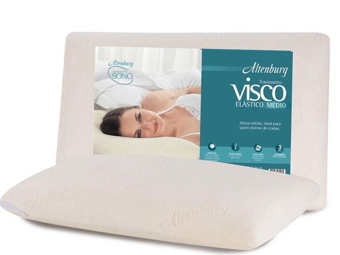 Travesseiro ref. 167240 Travesseiro viscoelástico(Nasa) 46cmx66cm - Altenburg Antipressão (molda-se aos contornos da cabeça) Termorregulador (não aquece com o calor do corpo) Antimicrobial (antiácaro/fungos e bactérias) 3 anos de garantia contra deformaçao