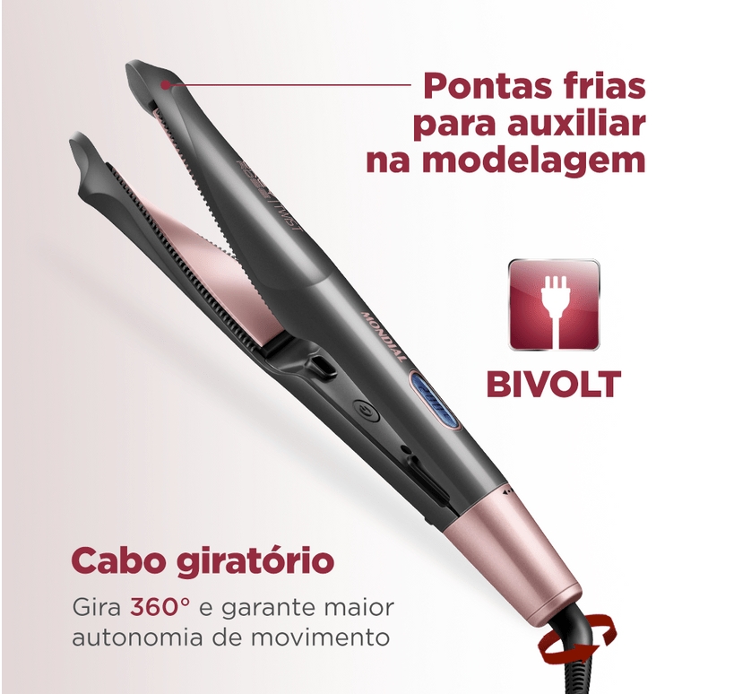 Prancha de cerâmica torcida ref. 135792 Prancha de cerâmica Twist alisa e modela bivolt - Mondial