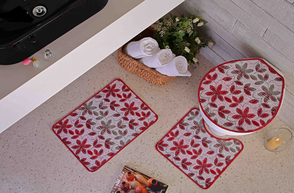 Jogo de banheiro 3pç. ref. 066073 Jogo para banheiro 3pç. Pratik Flores vermelha - Oásis