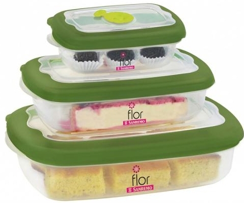 Conj. de potes ref. 0861722 Conjunto de potes 3pç. retangular flor -Sanremo