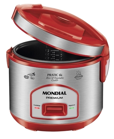 Panela elétrica p/arroz 220V. ref. 135026 Panela elétrica para arroz inox vermelha 6 xícaras PE-45 220V.- Mondial