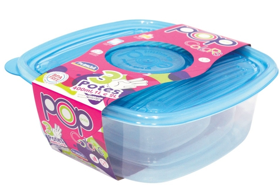 Conjunto de potes ref. 1305945 Conj. de potes pop quadrado 3 pç. - Plasútil