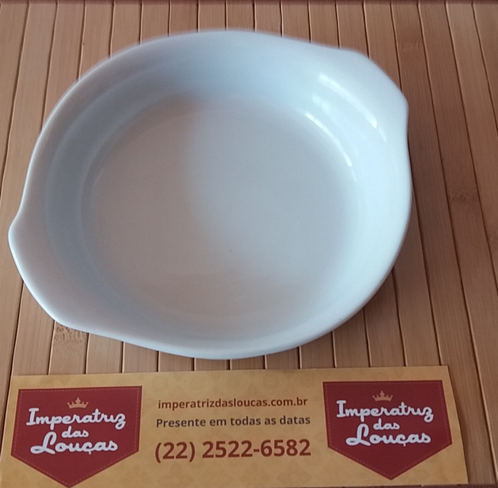 Assadeira refratária ref. 292238 Assadeira refratária redonda de porcelana branca c/aba 20cm