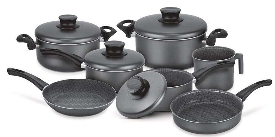 Jogo de panelas  Paris 7pç. ref. 016790 Conjunto de panelas 7pç. antiaderente tampa de alumínio Paris grafite - Tramontina