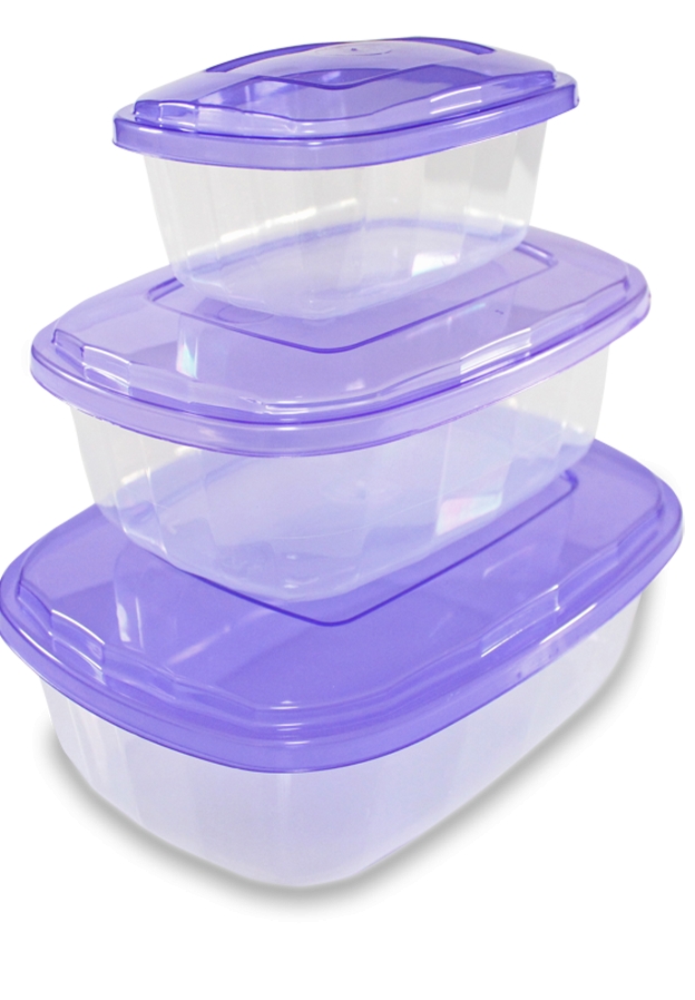 Conjunto de potes ref. 113631 Conjunto de potes retangular plástico 3pç. 631 - Plasnew