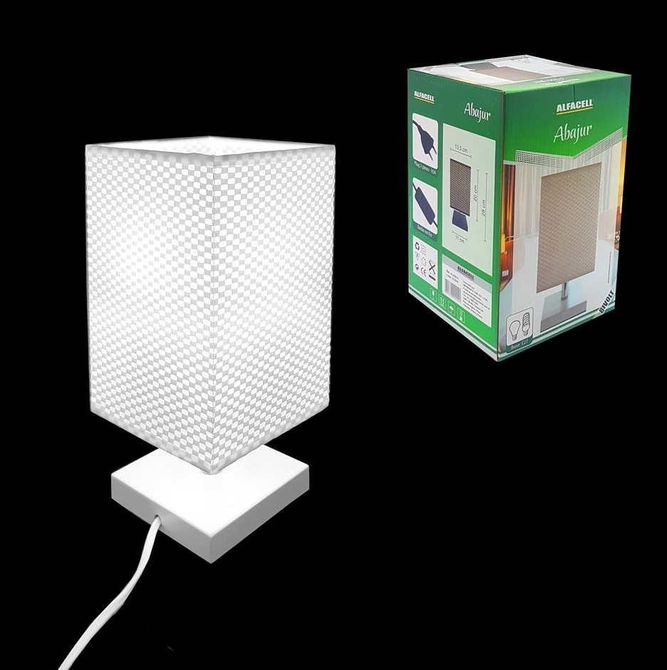 Abajur cupula de linho branco ref. 0555015 Abajur cupula de linho com base em madeira