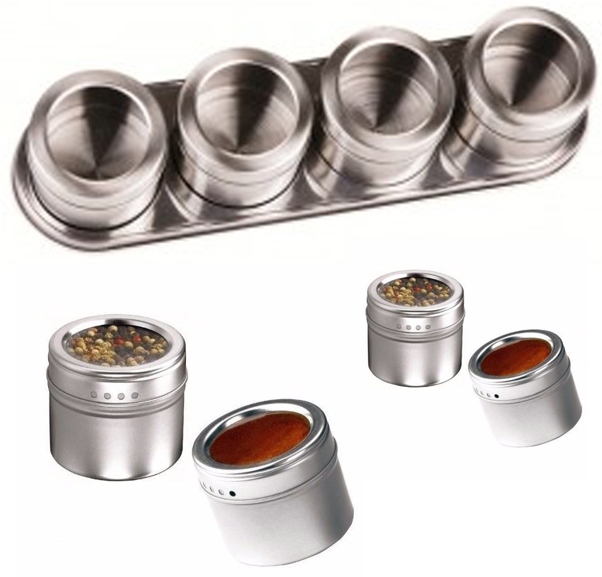 Porta condimentos magnético ref. 0895976 Porta condimentos magnético aço inox com suporte 5pç.
