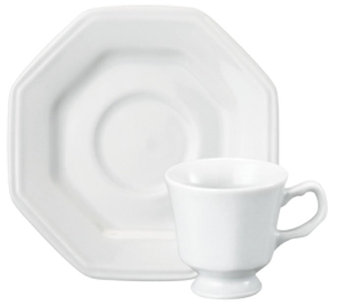 Xícara p/café porcelana Prisma ref. 064009 Xícara de café com pires de porcelana branca oitavada 65ml. Prisma - Schmidt