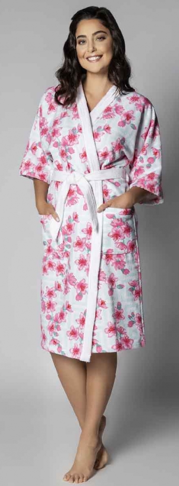 Roupão aveludado adulto M ref. 124098 Roupão aveludado quimono estampado Oriente M - Lepper
