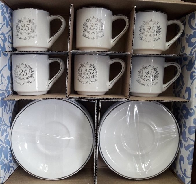 Jogo de xícaras de café bodas de prata