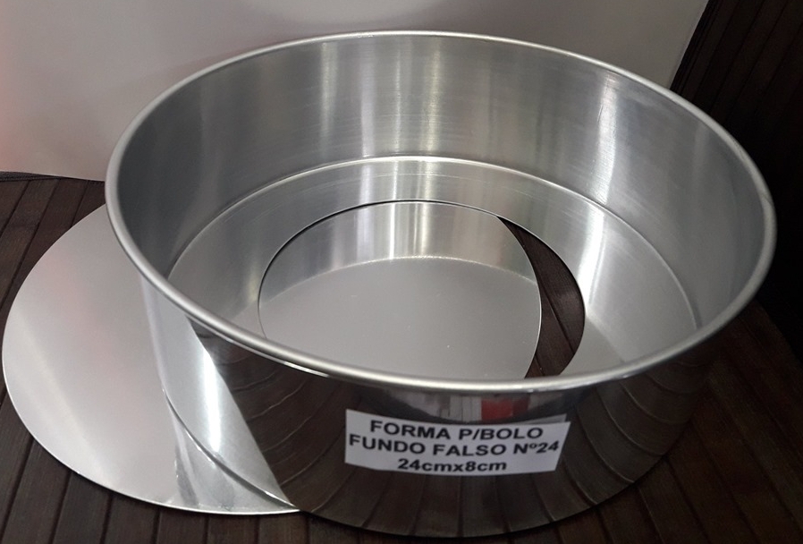 Forma p/bolo redonda fundo falso Nº24 ref. 039724 Forma para bolo de alumínio redonda fundo falso Nº24 - 24cmx8cm