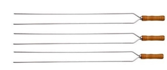 Espeto duplo ref. 047416 Espeto duplo de aço niquelado cabo de madeira 75cm - Viel