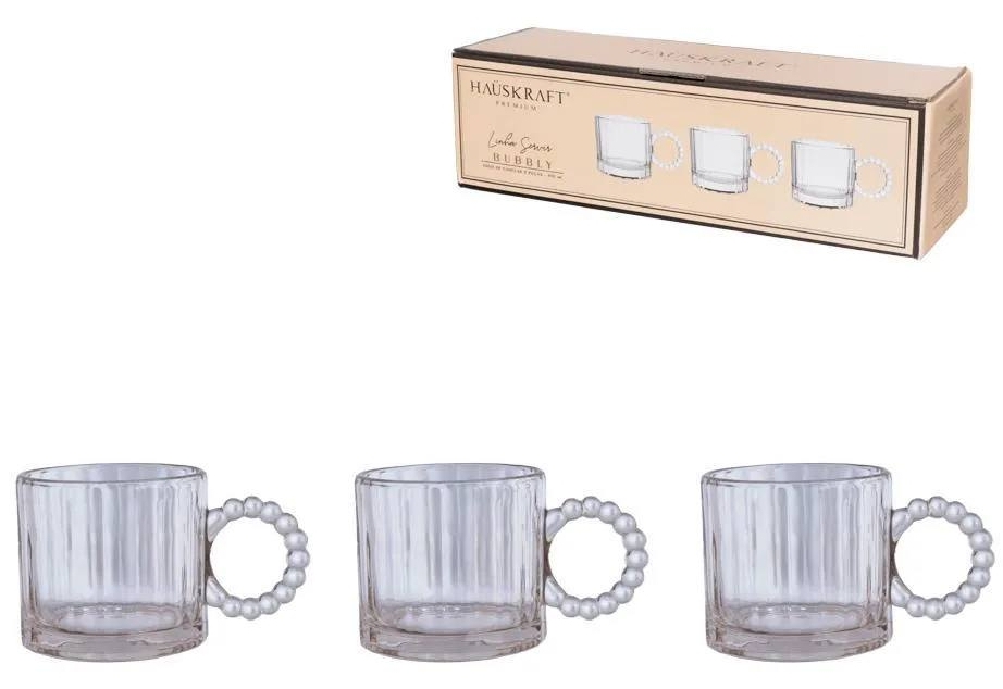 Caneca de vidro 3pç. ref. 157190 Caneca de vidro com 3pç. 330ml. - Hauskraft