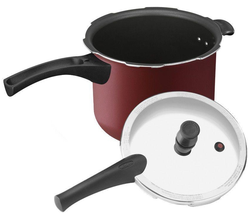 Panela de pressão antiaderente 4,5L ref. 012178 Panela de pressão antiaderente vermelha fechamento externo 4,5L. - Rochedo