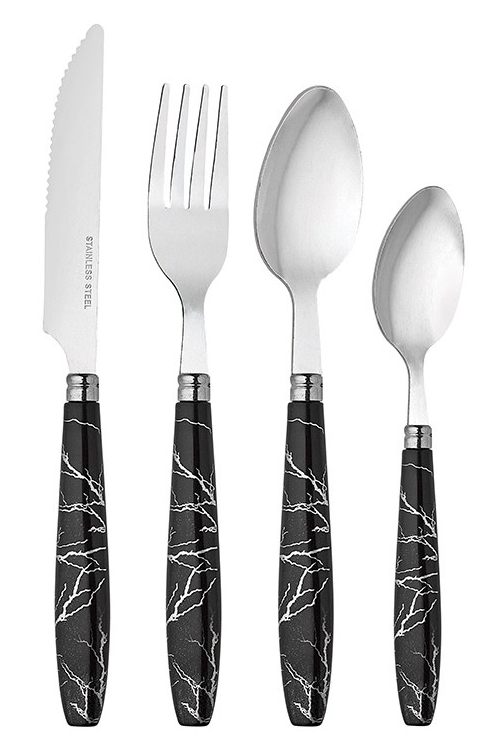 Faqueiro cabo marmore 24pç. ref. 157032 Faqueiro inox cabo marmore preto 24pç. (serve 6 pessoas) - Hauskraft