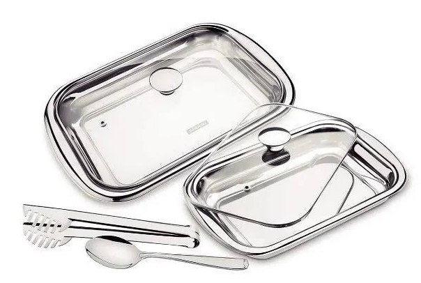 Jogo p/assar e servir inox ref. 016786 Jogo para assar e servir inox com tampa de vidro 4pç. Cosmos - Tramontina