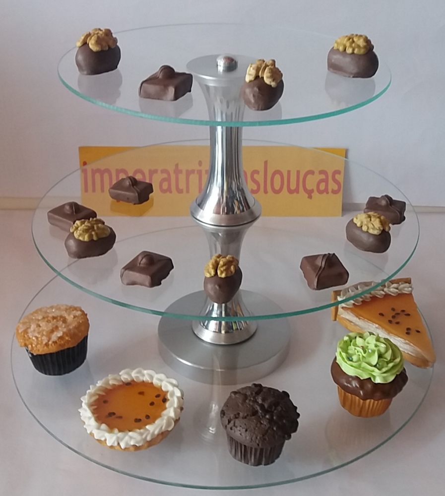 Prato para doces 3 andares (buffet)vidro pé alumínio 43cm/36cm/28cm