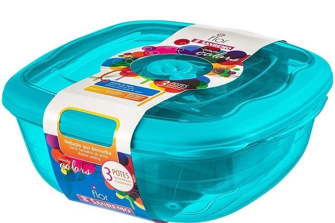 Conjunto de potes quadrado plastico azul 3 pç. (280ml/920ml./2,7L.) SR712/59C- Sanremo