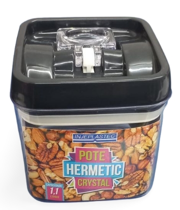 Pote hérmetico quadrado acrílico com trava tampa preta 1,1L. - Injeplastic
