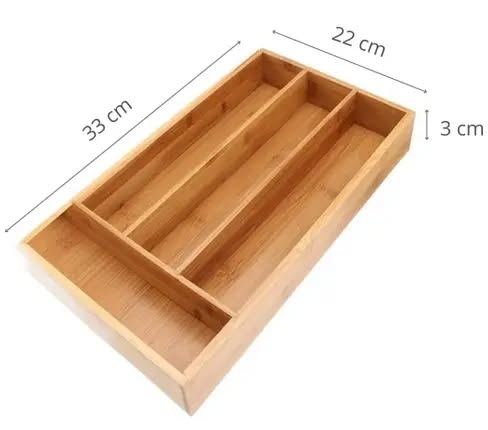 Porta talher  bambu ref. 0890006 Organizador de gaveta porta talher bambu 33cmx22cm 4 divisórias - Ke Home