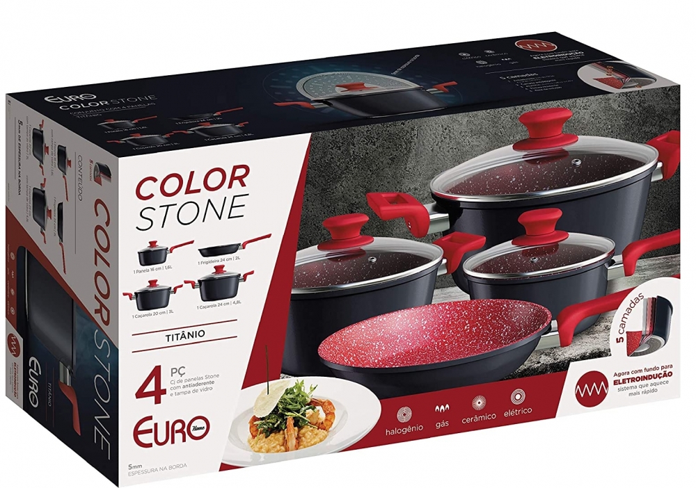 Jogo de panelas antiaderente Colorstone Titanio 4 pç. fundo para eletroindução - Euro