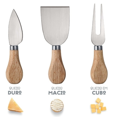 Kit para queijo inox 3pç. cabo madeira - Euro