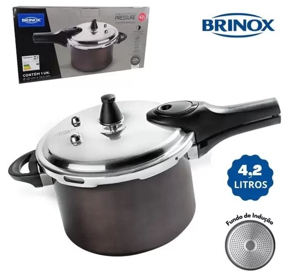 Panela de pressão antiaderente revestimento cerâmico camurça fundo para indução 4,2L. Pressure- Brinox