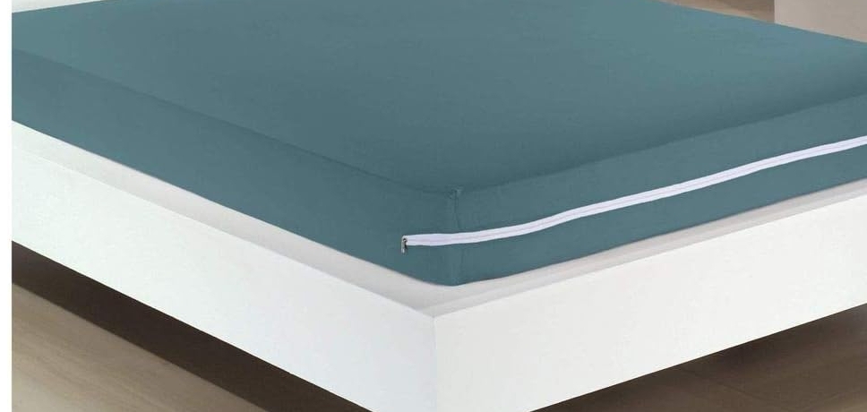 Capa para colchão (protetor de colchão) de malha solteiro Petroleo100% algodão c/ziper