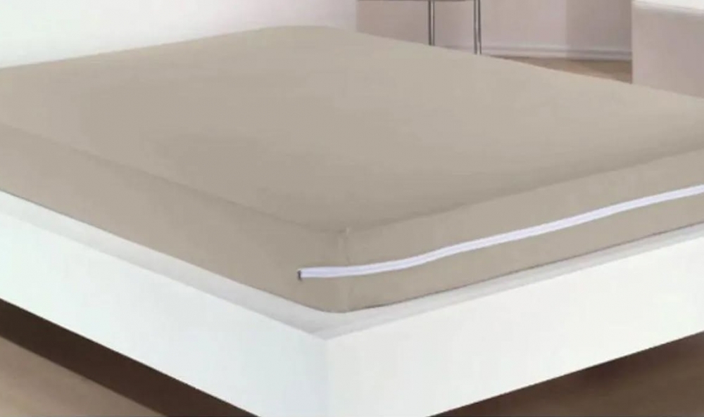 Capa para colchão (protetor de colchâo) de malha casal queen c/ziper Trigo 100% algodão 1,58mx1,98mx30cm -