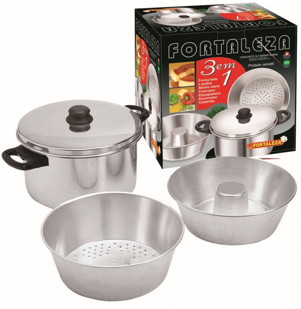 Conjunto Banho Maria 3x1 ref. 0590100 Conjunto Banho Maria de alumínio polido 3x1 - Al. Fortaleza