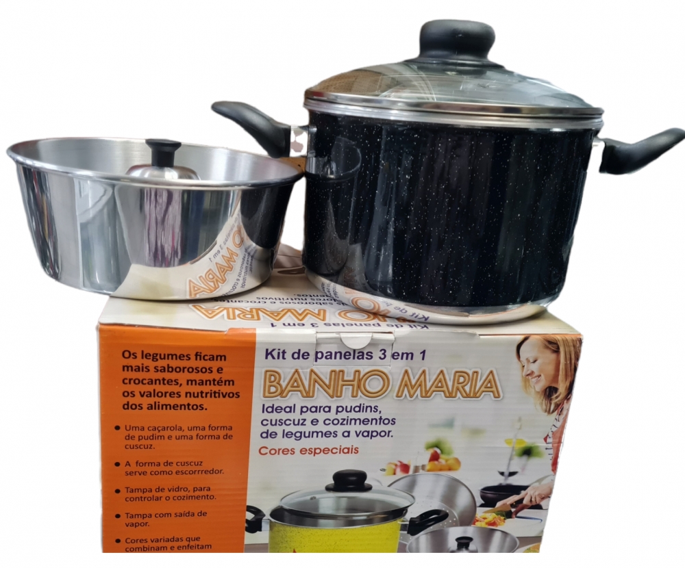Kit banho maria 3 3m 1 ref. 060605 Kit banho maria 3 em 1 de alumínio preto - Vieggio