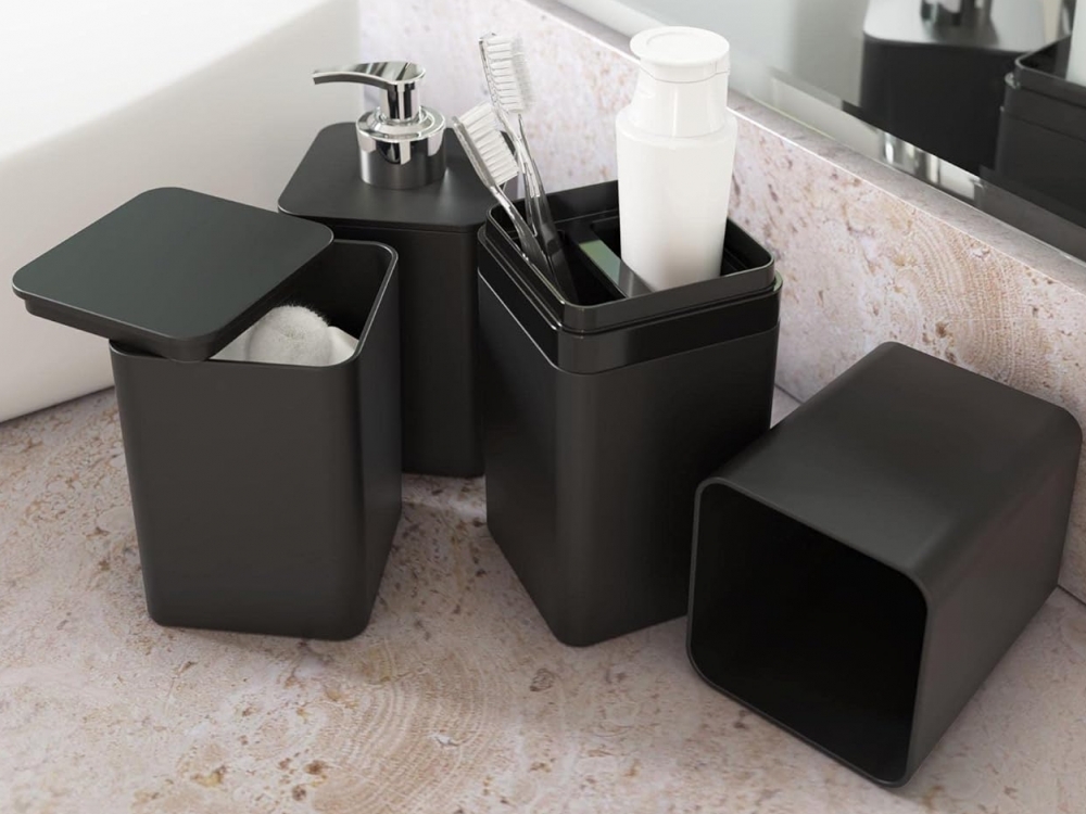 Kit para banheiro 3pç. (porta algodão/porta escova c/tampa/porta sabonete líquido ) Smile preto - Stolf