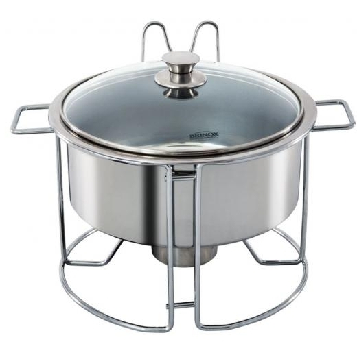 Rechaud inox redonda tampa de vidro banho maria 7L. - Brinox