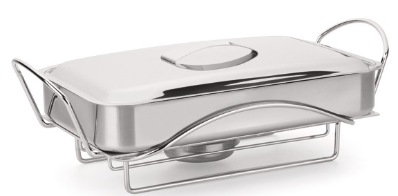 Rechaud retangular inox com placa difusora de calor e assadeira inox com tampa 36cmx23cm -Forma