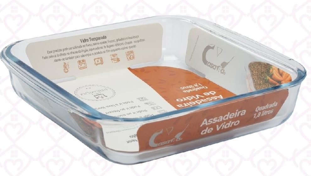 Assadeira de vidro borossilicato quadrada com aba 24cmx22cmx5cm