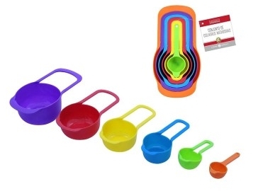 Conj. de medirores de plástico 6 pç. (xícara de chá 250ml./1/2 xícara de chá 125ml. /1/3 xícara de chá 85ml. /1/4 xícara de chá 60ml. / colher de sopa 15ml./ 1/2 colher de sopa 7,5ml.)