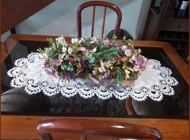 Caminho (trilho) de mesa com detalhes em renda 40cmx90cm - Istambul - Jolitex